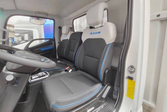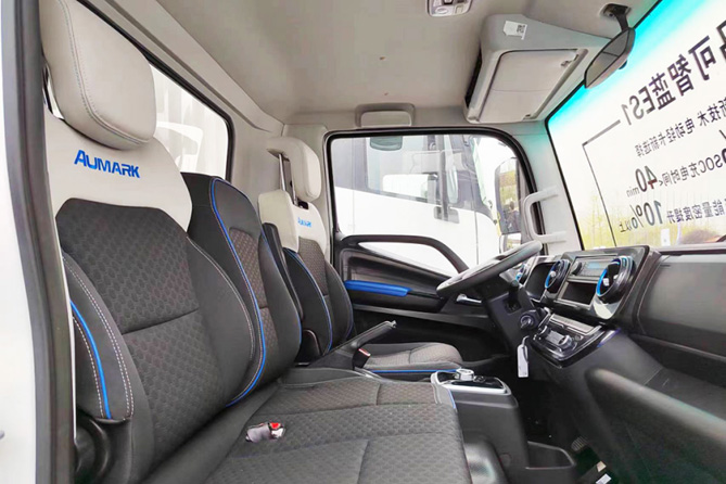全新一代欧马可智蓝ES1纯电轻卡采用智能座舱设计,7寸TFT液晶仪表,显示内容丰富,科技感十足,还支持多媒体交互,远程OTA升级,让整车时刻保持最佳状态;此外,全新一代欧马可智蓝ES1还可以选装10.25寸大屏多媒体播放系统,支持手机蓝牙互联、在线音乐等功能,为用户提供娱乐支持。