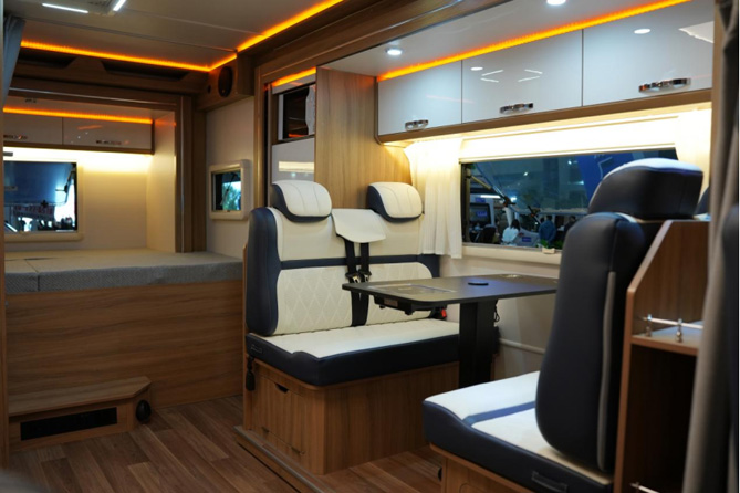 依维柯专业底盘采用非承载式车身,载重能力强,加之八速手自一体变速箱及F1高效铂金动力的加持,旅途中遇到爬坡、洼地游刃有余;除此之外,依维柯专业底盘采用全新行驻一体式加宽后桥系统,不仅兼顾了轻量化需求更提升了整车稳定性与高承载能力,双后轮胎设计也使得房车的可靠性达到了更高的层次;还可选装进口多模式空气悬架,一键操纵,提高房车通过性的同时,也极大提升了驾乘舒适度。无论你是想去山东淄博撸串,还是去西藏虔诚祈福,又或是去丹霞感受大自然的鬼斧神工……依维柯房车均可带你安全抵达。