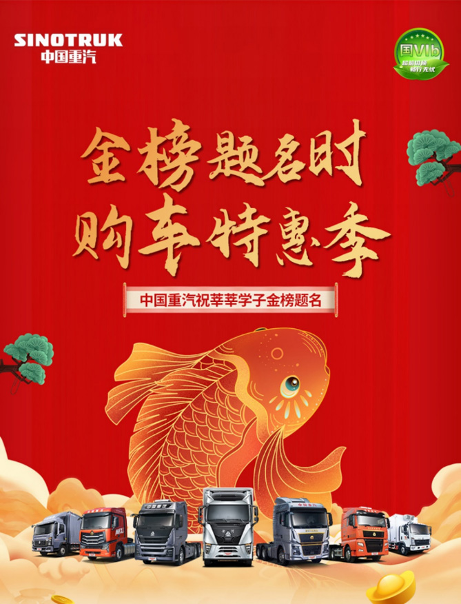 6月,一年一度的高考即将拉开帷幕。卡车家庭也不例外,孩子在考场上运笔如飞,身为父母的卡友、卡嫂在路上疾驰向前,他们都有着共同的目标:奔向更美好的未来。值此高考季来临之际,中国重汽作为卡车家庭的亲密伙伴,面向家有考生的卡友们推出“金榜题名时 购车特惠季”活动,为考生助力,致敬卡友家长,为全家人的“大学梦”锦上添花。