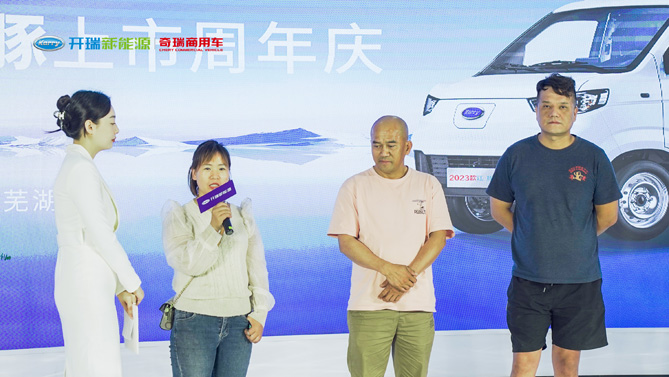 在直播现场,3名开瑞江豚老用户到场,一起见证开瑞江豚上市1周年庆典。3名用户分别对开瑞江豚的“续航,空间,驾驶感受”给出了肯定。