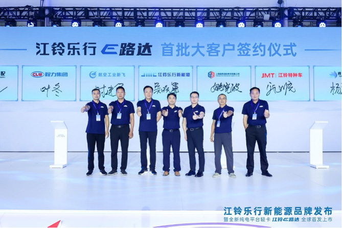 领先的技术实力,也让江铃乐行E路达备受业界认可。现场,江铃乐行E路达首批大客户订单交付及生态伙伴签约仪式成功举行,首批意向订单突破万台,这意味着江铃乐行新能源在成就客户的道路上,迈出了坚实一步。未来,江铃乐行新能源还将陆续推出覆盖智慧物流、绿色客运、任务&改装领域的优质产品,持续为客户创造美好生活赋能。