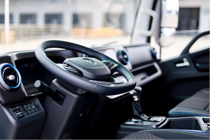 欧马可Xpro高管配置可不少,一体化的中控台,奔驰同款的涡轮出风口与黑色的内饰搭配相得益彰,蓝色色条增加了车辆的年轻气息。减震座椅可前后调节,支撑性、包裹性都很舒服,座椅采用针织布艺,干爽透气,即便是长时间的驾驶也不会感觉不舒服。多功能方向盘握感舒适,按键布局合理,使用便捷。