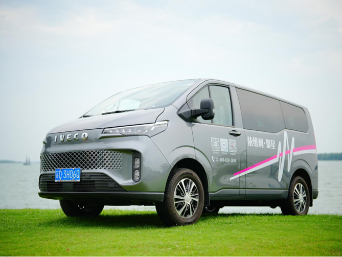 周先生说,依维柯聚星的超高颜值,改变了他对轻客固有的认知,一体化科技前脸,流光车身造型,巨幕全景侧窗,还有Eye-light星眸灯语系统等等这些都让它看上去更像是一辆新能源的MPV PLUS,科技与时尚并存。