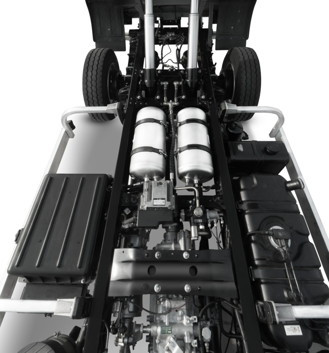 对于工程自卸车来说,底盘非常重要,金刚S1采用了760mm宽的大梁,大梁的断面高度达到了215mm,稳重又结实。那么针对承载能力方面,卡友是特别关注的,后轮单胎设计是否承载能力就弱化了。福田瑞沃为了保障承载能力,金刚S1的后轮使用了245/70R19.5 12PR规格的高负载轮胎,钢制的轮辋,这个轮胎的宽度更大、厚度更大,同时万里扬手动8挡、高低速变速箱,车辆起步、爬坡时低扭表现更好,更有劲儿,能有效提升车辆自身的通过性和脱困能力。