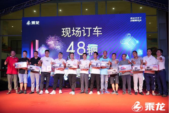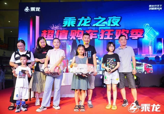 精彩的表演,伴着互动环节中的奖品一件件送出,卡友热情不断高涨,当乘龙携明星产品乘龙H5及H5V载货车亮相时,现场火热的气氛直达高潮。乘龙更带来了超值的优惠政策回馈广大客户,让卡友能够以更优惠的价格去实现致富梦想。