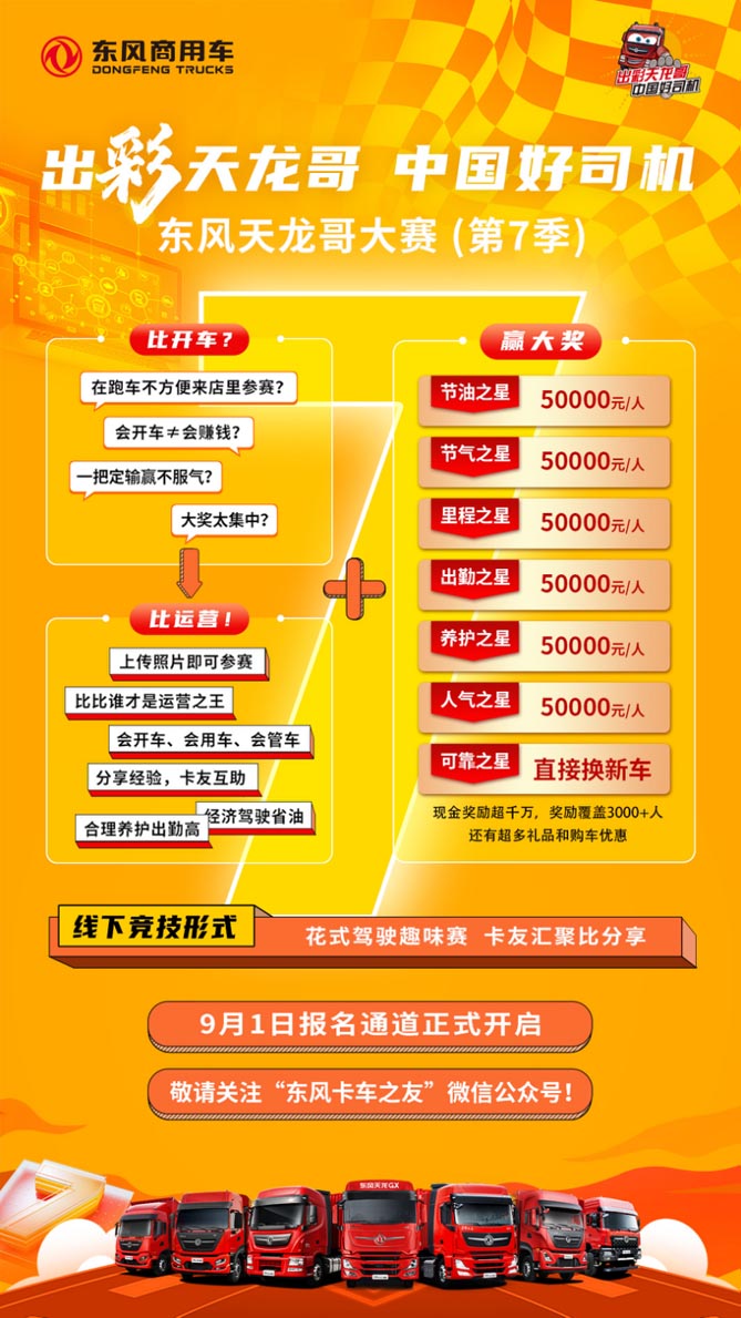9月1日,东风天龙哥大赛(第7季)报名通道正式开启!