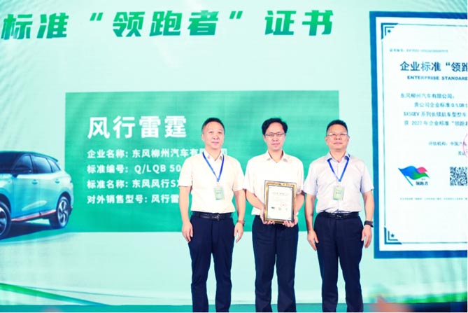 作为一大亮点,企业标准“领跑者”工作委员会副主任鲍威和中国汽研能源动力事业部总经理、国家氢能动力质量检验检测中心主任、中国汽研指数管理中心副主任阮廷勇,为东风柳汽风行雷霆和乘龙H7产品颁发了企业标准“领跑者”证书。