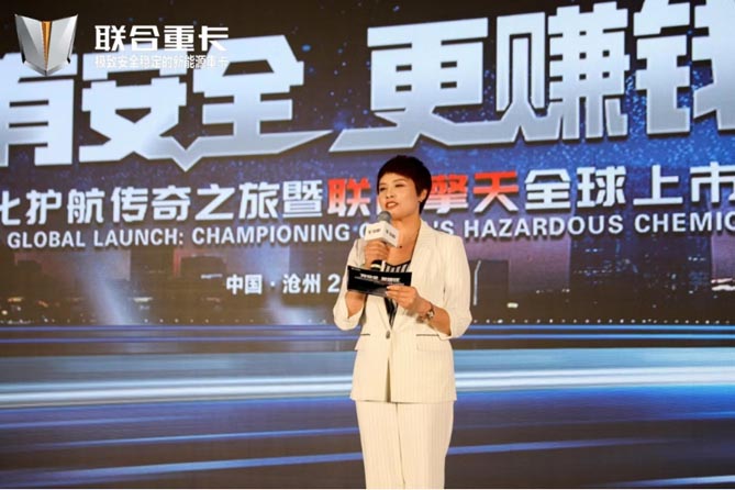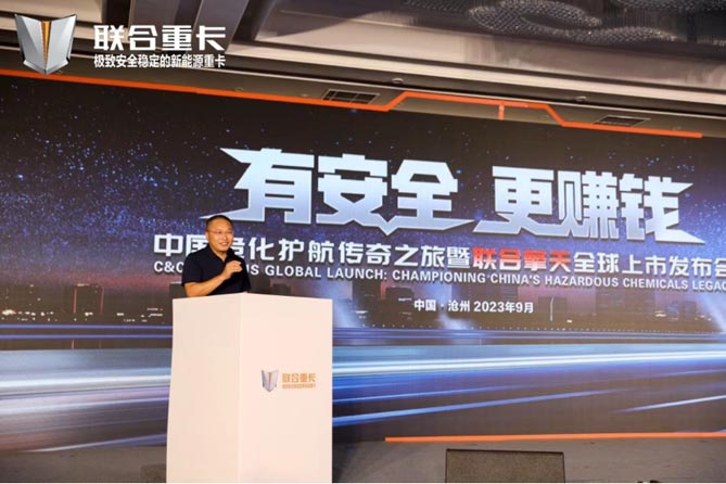2022年,全国发生化工事故高达127起,死亡143人,数据触目惊心。联合重卡常务副总经理陈刚群在致辞中表示,“安全是联合重卡人最高贵的信仰!融入到了联合重卡的血脉与基因之中。作为一款有温度、有担当的民族重卡品牌,拥有168项安全技术装配的联合擎天,可以与任何一款世界级重卡品牌同台PK。”