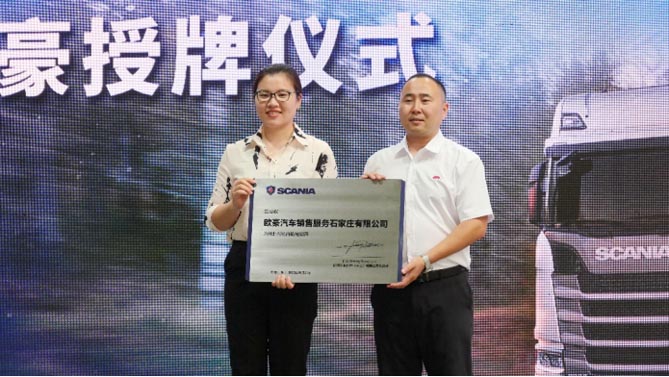 2023年9月19日,斯堪尼亚中国授权经销商——欧豪汽车销售服务石家庄有限公司(以下简称“石家庄欧豪”)隆重开业。斯堪尼亚销售(中国)有限公司董事总经理任川(Jimmy Renström)携其核心管理团队出席开业及授牌典礼,共同见证这一重要时刻。