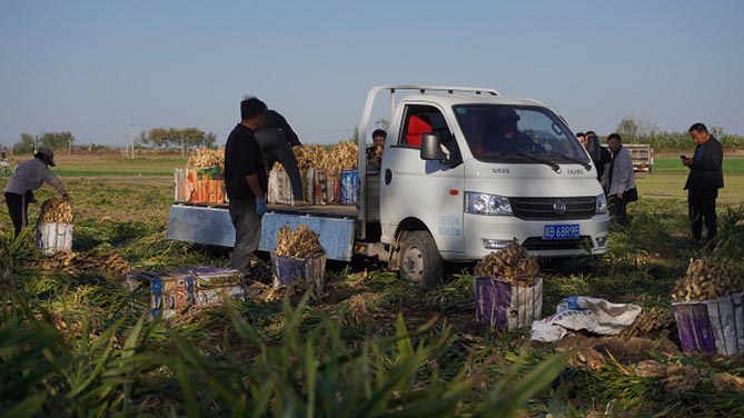 提到北方,大家第一想到的或许是迁西板栗,殊不知,生姜也已名声赫赫。当下正是生姜收获的季节,据当前采摘数据来看,亩产可达5000公斤,如此庞大的体量,卡车自然承担起运输的重任。
