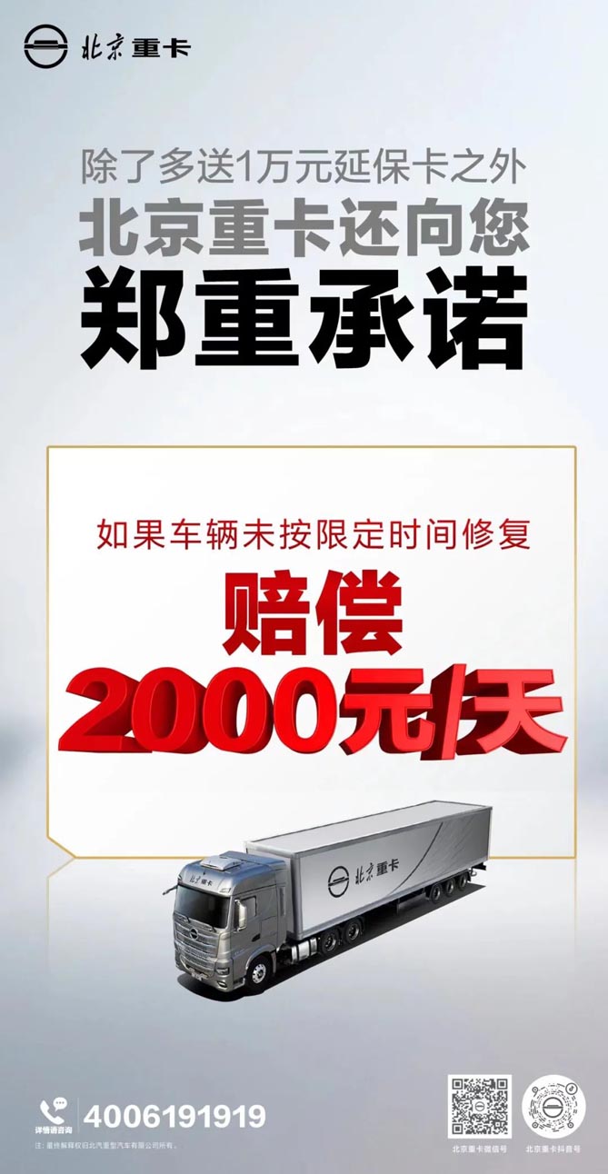 2000元/天误工补偿! 北京重卡服务再“加码”