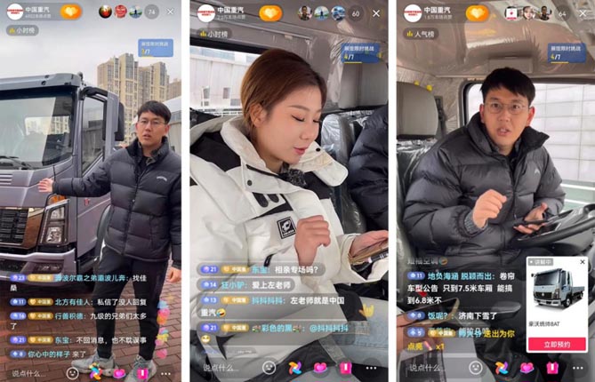 11月11日当天,中国重汽HOWO轻卡直播专场圆满举办,人气主播与HOWO轻卡产品经理梦幻联袂,为卡友带来一场精彩纷呈的线上品鉴会,车型问答、讲解别开生面,神秘豪礼、互动福利送不停,将这场钜惠盛宴推向巅峰。