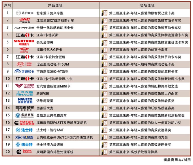 12月19日,由《润鼎商用车网》主办的“第五届赢未来-商用车与零部件-年轻人喜爱的高效先锋奖”评选颁奖典礼在京举行。