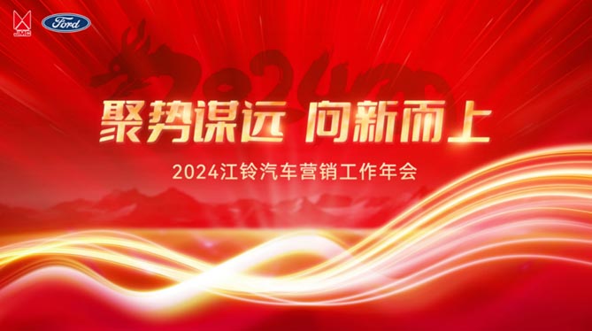 2024年1月21日,江铃汽车营销工作年会在江西南昌隆重召开,大会以“聚势谋远 向新而上”为主题,来自全国600多位经销商和投资人齐聚一堂,共谋战略发展。江铃集团党委书记、董事长邱天高讲话,江铃集团党委副书记、总经理万建荣出席,江铃股份总裁熊春英为四大品牌事业部授军令旗,福特中国商用车事业部副总经理李平晖,集团班子成员金文辉、衷俊华、丁文敏、李小军出席参加。