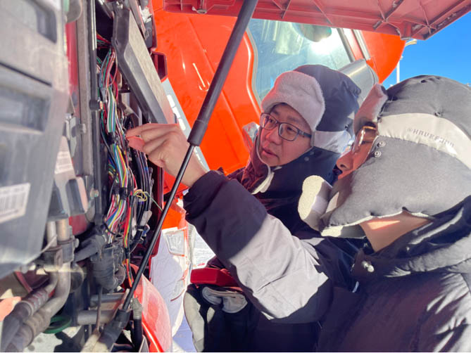 “洗了手千万擦干再摸车门,要不然能撕掉一层皮!” 中国重汽“三高试验”团队的老队员挨个叮嘱着第一次来漠河的同事,一句话道出了他们在极寒之境所经受的艰辛。本次冬测是中国重汽历年来规模最大的一次,部分初次来漠河的实验人员,刚下火车就被冷空气的“下马威”镇住了,裹着两层羽绒服在现场直播仍直呼“扛不住”。