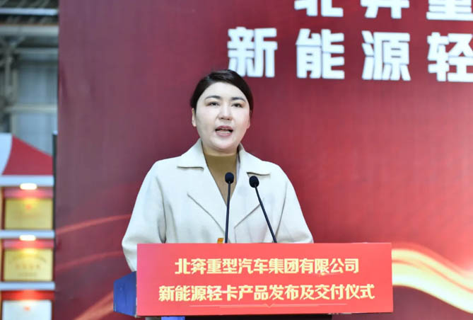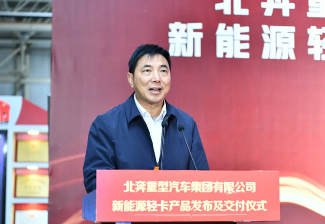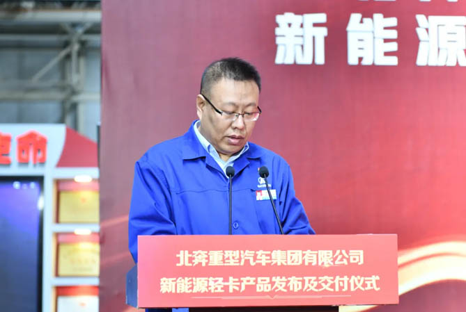 刘海泉宣布了北奔重汽首批新能源轻卡发车。