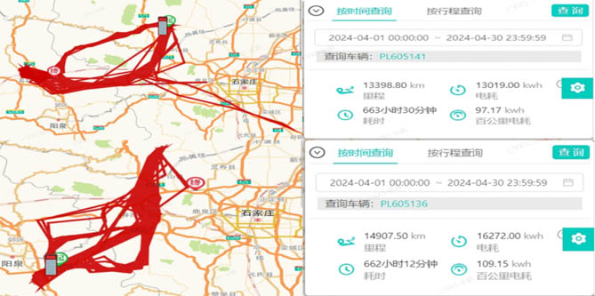 整车轻量化设计、智能控制技术以及扁线电机、低滚阻轮胎等节能技术,让电耗水平做到全行业领先。在山西阳泉至河北平山49吨标载工况下,平均每公里电耗不到1kwh。