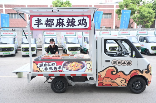 此次交付的移动售卖车,正是基于大力牛魔王D01车型改装而成。这款车以其绿色、高效、安全舒适和易改装的特点,深受用户喜爱,并在网约货运、到家服务、快递配送、个体自备、移动售卖、环卫等40余个末端配送场景中展现了强大的适应性。它不仅在国内市场受到了热烈欢迎,更在国际市场上展现出了强大的竞争力,不仅已经成功发运至东南亚引起追捧,并与阿联酋签订了1000台换电版车型的订单。如今,它又与叄石哥麻辣鸡、石斛是福这类卤味、小吃行业知名头部连锁品牌达成合作,将以全新的姿态,为零售市场注入了新的活力。