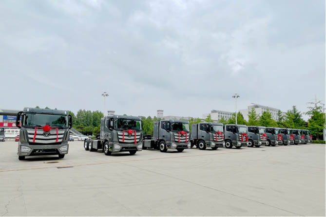 2024年5月24日,欧曼与丰宁鑫源矿业达成100台欧曼智蓝423kWh纯电牵引车战略签约,并进行了首批20台交付,用于其子公司承德沃华筑嘉建筑材料有限公司进行建筑骨料转运。在国家环保政策、“双碳”战略不断推进过程中,新能源重卡成为推动矿山、建筑企业运力绿色升级的关键一环。欧曼新能源产品以科技赋能,充分展现出更安全、更节能、更环保、更高效的优势,不仅能充分满足矿料“绿色”转运的需求,还能进一步提升运营收益,助力企业实现环保与效益兼得的目标。