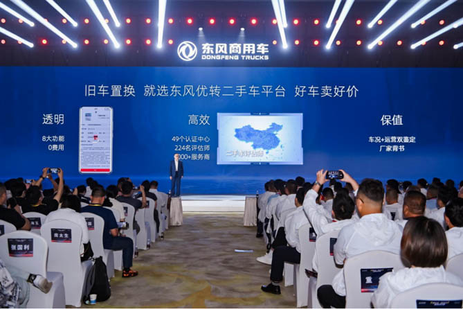 在金融方面,东风商用车结合当下二手车交易雷区多、周期长、价格低等客户痛点,为客户推出了“东风优转二手车平台”。不仅能做到车辆信息公开透明,杜绝估值、鉴定、买车、卖车、整备、延保、出口等各环节套路,还能实现高效卖车,通过“优转平台”,能够实现在48小时内车源达到万人关注,车源信息快速铺遍全国。同时,在全国布局49个认证中心,打造224人的置换服务团队,与超一千家车商实现资源联动。保证客户达成置换意向后,15天之内完成收车过户。并通过完整的车辆运营数据,为卡友爱车实现“车况+运营”双鉴定,厂家背书,帮助卡友好车卖好价。