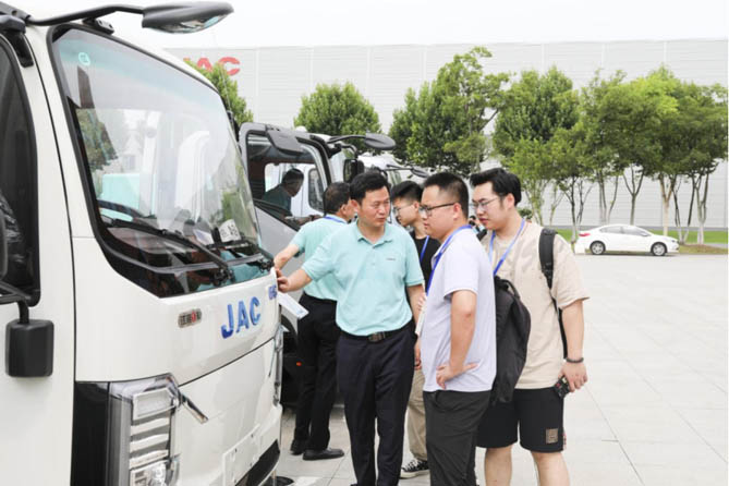 参观完生产车间后,老用户们来到轻型商用车营销大楼广场,深度体验了江淮1卡全系展车。现场工作人员向他们逐一介绍了帅铃S9冷藏车、骏铃A9、德沃斯T7等燃油车型,以及全新一代纯电轿卡恺达U7、帅铃HS7/ES6、Van宝路等新能源车型的价值优势。“怪不得老乡鸡指定要帅铃冷藏车做配送车辆,原来制造基地这么高端。”负责老乡鸡运输的安徽吉道运输公司卞总说,江淮1卡不愧是“最佳冷链物流装备合作伙伴”,品质值得信赖。