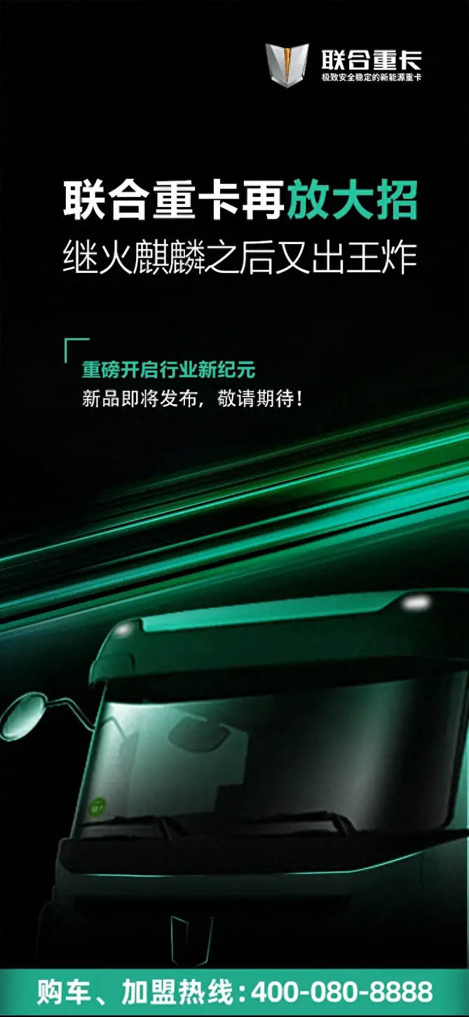 今日,联合重卡官方突然发布一则主题为“联合重卡再放大招,继火麒麟之后又出王炸”的海报!
