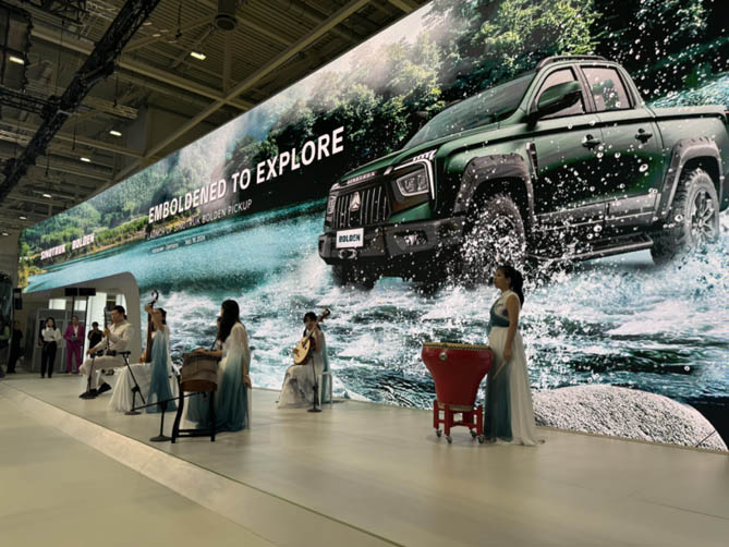 以中国科技创新之力,中华传统文化之雅,向全球用户讲述中国故事。搏胜皮卡的发布会不仅展现了卓越的产品力,更将中国传统文化元素融入每一个环节,民乐团的古典音乐演奏、传统茶艺美学与技巧的鉴赏,让到场嘉宾充分感受到来自东方的新奇与惊喜;清丽淡雅、水墨写意风格的视觉设计,让发布会显得别具一格;而本次展出的两款车型搏胜S9和搏胜S7,车身颜色分别采用了极具中式色彩美学韵味的丛林翠和霞光紫,让中国绝色惊艳汉诺威。搏胜皮卡发布会以产品为载体,传递传统文化与现代工业交融之美,向世界展现了根植于中国文化土壤的中国品牌风范。