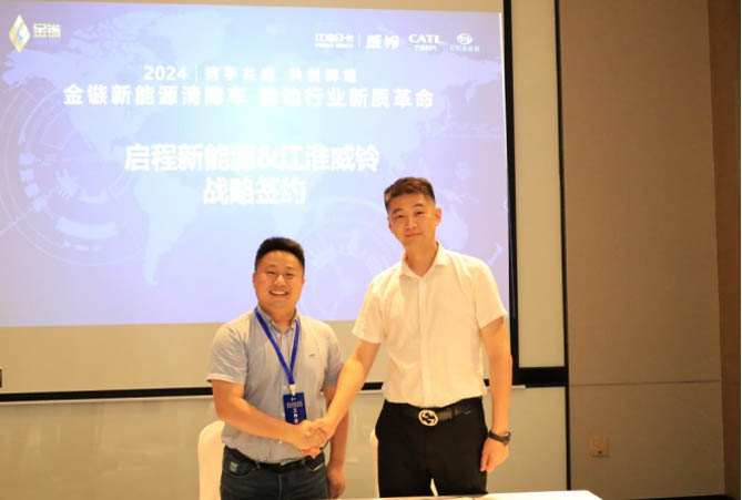 启程新能源和江淮威铃的战略的签约环节,由启程新能源董事长郑国洪、四川江淮威铃市场拓展项目组项目总监王鑫,共同签署战略合作协议!双方将继续发挥自身资源和优势,开发金镞新能源清障车!实现深度合作、优势互补!