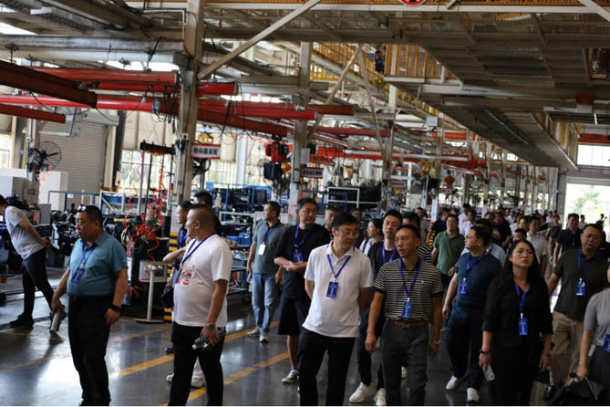 9月22日上午,各参会嘉宾齐聚金镞新能清障车底盘制造基地——江淮西南制造基地,先后参观了金镞新能源清障车的底盘生产线,包括“冲、焊、涂、总”四大生产工艺车间。在车间内,有多条先进的生产线、严格的质量检测流程以及工人们熟练的操作技艺、冲焊工艺、机器人喷涂工艺等。四川江淮威铃郭宇为现场嘉宾介绍了四川江淮公司发展历程,四川江淮威铃向芥作在展车旁,对威铃底盘产品性能优势和特点进行了分享。