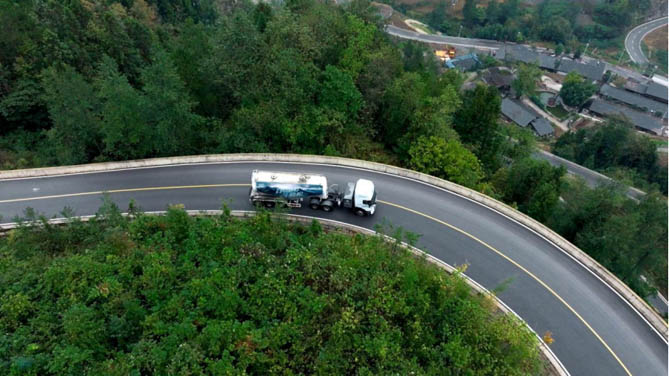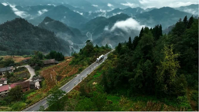 对于在山区运营的重卡用户而言,长距爬坡、连续弯道、极陡下坡等工况下,往往有着电耗骤增、动力不足、操控不便、驾驶安全性等用车痛点。宇通重卡针对性开展真实用车场景下的实况性能验证挑战,以真实表现打消客户顾虑。此次挑战,宇通400度电牵引车从石柱县出发,一路向连绵群山深处进发,途经壮阔秀丽的獐子崖绝壁天路、351国道弯弯绕绕山路108拐、海拔落差400米以上等多种复杂路况,以卓越硬实力展示产品在节能、动力、操控、安全等方面的优秀表现。