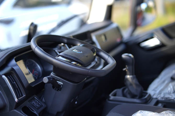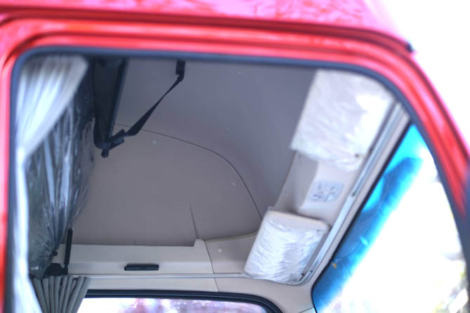 蓝擎·龙山区版高顶车型拥有行业首创高顶驾驶室,搭配独立卧铺,内部空间大,即使186cm高大身材的驾驶员,也能在驾驶室内轻松站立;同时配备了电动空调等一系列乘用车设计,而且内衬采用轻质GMT结合针织面料,通过热模压成型工艺,不仅重量轻,而且具备出色的阻燃性能,为行车安全再添保障。此外,蓝擎·龙山区版高顶车型提供了宽广的前视野,确保前方地面4米外无盲区,以便及时应对各种突发情况。
