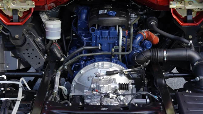 蓝擎·龙山区版高顶搭载潍柴WP2.5N180+法士特8挡变速箱+汉德免维护后桥组成的黄金动力总成,传动效率高达96%以上,不仅换挡操纵更顺滑、起步能力更强,而且大扭矩输出区间和低转速时的扭矩表现同样出色;同时,大扭矩的设计使得车辆更加适应重载需求,在载重爬坡和山区陡坡等恶劣工况下,依然能够保持强劲的动力输出,轻松应对各种挑战。