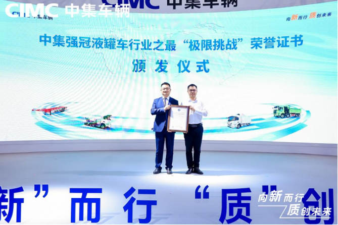 在以“强冠雄起,跨越时代”为主题的液罐车年度车型发布仪式环节,中集强冠液罐车2025年度车型正式发布、“雄起计划”正式启幕,中集车辆强冠业务集团以不断升级的产品和服务为化工物流行业保驾护航。同时,现场公布了行业之最“极限挑战”的结果并颁发荣誉证书,此次“极限挑战”生动诠释并验证了中集强冠液罐车“不怕撞”的核心客户价值,随后各方代表现场举行了危化品行业安全发展倡议签字仪式,致力于行业的高质量发展。