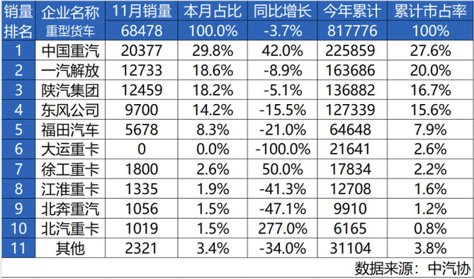 谁与争锋——中国重汽11月销量再夺魁!年度桂冠触手可及!