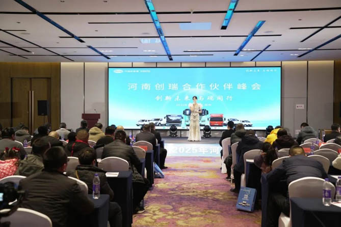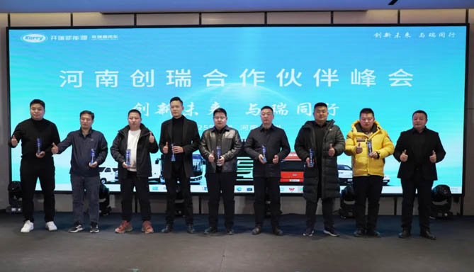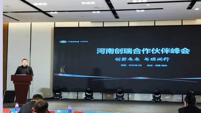 2025年1月11日,以“创新未来 与瑞同行”为主题的2025年河南创瑞合作伙伴峰会在郑州举行。河南创瑞汽车销售服务有限公司(以下简称:河南创瑞)作为奇瑞商用车经销商,充分发挥奇瑞商用车资源与品牌等优势,通力合作,2024年销量突破800辆,位居经销商卡车销量榜第二名。