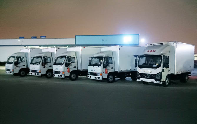在湖北、闽赣等地,江淮1卡骏铃V5&V6多次批量交付当地某物流公司及VIP客户。骏铃冰博士是江淮1卡骏铃专为冷链物流打造的旗舰产品系列,匹配冷链专用底盘,和原厂冷藏厢体,精准温控系统,满足各类高标准冷链物流需求。