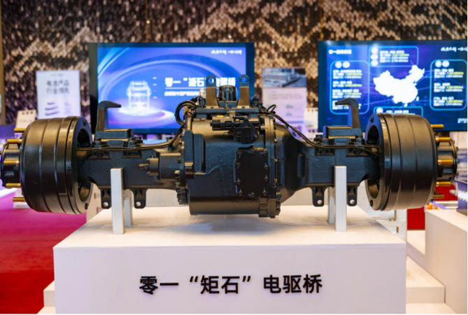 零一汽车推出的“矩石电驱桥”是全球唯一量产的集成式电驱桥,通过将电机、变速箱、取力器和车桥四者高度集成,颠覆了传统重卡的复杂结构,其采用平行轴集成设计,优化质心与结构刚性,系统重量仅1000kg却具备16吨级承载能力,其额峰值率达390kW,轮端扭矩48000Nm,最高效率92.7%,在动力性能、传动高效性、承载能力、耐久能力及防水性能等方面均处于行业领先地位。适配车型覆盖90%重卡场景,在港口、矿区等复杂工况实测中,驱动效率较传统方案提升8%。
