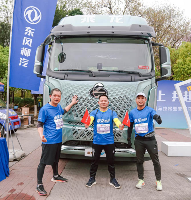 在马拉松赛程中,东风柳汽的身影随处可见,不仅有由东风柳汽员工、员工家属、商乘客户、合作伙伴及媒体共600人组成的“乘龙跑团”和“星海跑团”挥洒汗水;赛道两旁还设有12个“汽车音乐加油站”,为参赛选手加油助威。