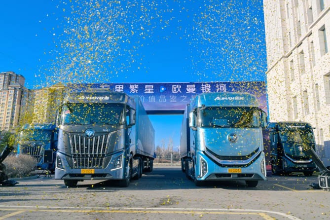在西安至霍尔果斯的高原征途中,欧曼银河7燃气重卡也惊艳亮相。在燃气超级动力链5.0的赋能下,该车型以580大马力、2600N·m大扭矩展现出更优的动力性能与经济性能,使得整车起步、加速、超车更为强劲、高效,运输效益显著提升。