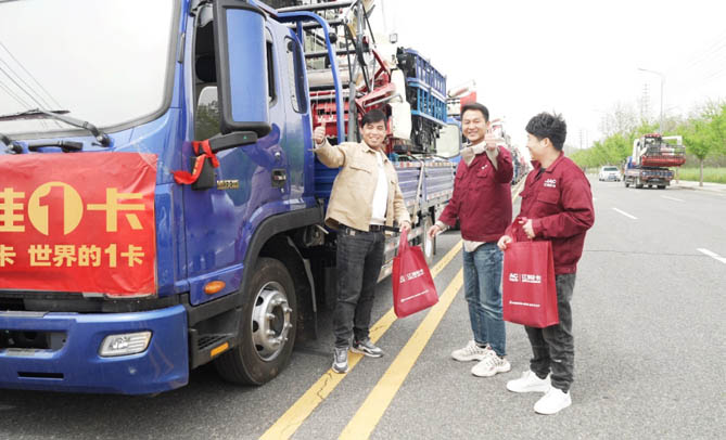 在农机出征仪式上,江淮1卡骏铃运维工作人员为即将出征的麦客们送上暖心大礼包。江淮1卡1300+服务网点遍布各地,非偏远地区服务半径小于50km,人工客服热线400-800-9933全天候待命,用实际行动解决麦客的后顾之忧,将服务触角延伸至农业生产一线,助力农业“颗粒归仓”。