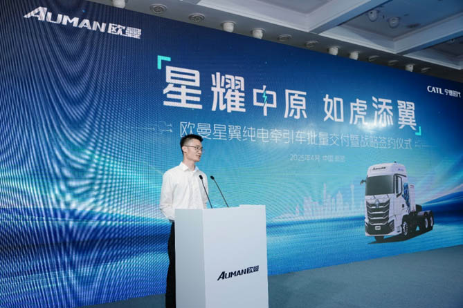 对此,欧曼事业部营销公司河南分公司总经理李华力在致辞中表示:“此次欧曼星翼纯电牵引车登陆河南,精准契合当地物流特色需求,以大电量、低能耗、超舒适的领先产品力,为用户高效绿色运营加码,为中原地区物流行业高质量发展提供全新驱动力,为河南地区物流行业发展注入强大推动力。”