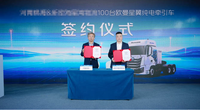 逐鹿中原,绿色启航。通过此次战略合作,欧曼星翼纯电牵引车不仅赋予了重卡用户大电量、超舒适、强动力、全高效体验,实现运营成本与运输效率的双重突破,更以此为起点,加快欧曼新能源践行中国商用车产业“零碳未来”的步伐,赋予物流业高质量发展的广阔新天地。