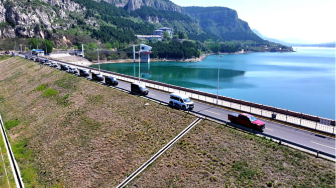 燃擎集结,不负热爱;驶入自然,探寻野趣。晨曦中,车队从济南市区启程,在前往露营地的50余公里路途中,途经粼粼波光的卧虎山水库、如田园诗画般的门牙驿站、颇具古韵遗风的西山石桥……通过打卡南部山区代表性景点,沉浸式观赏春日胜景。
