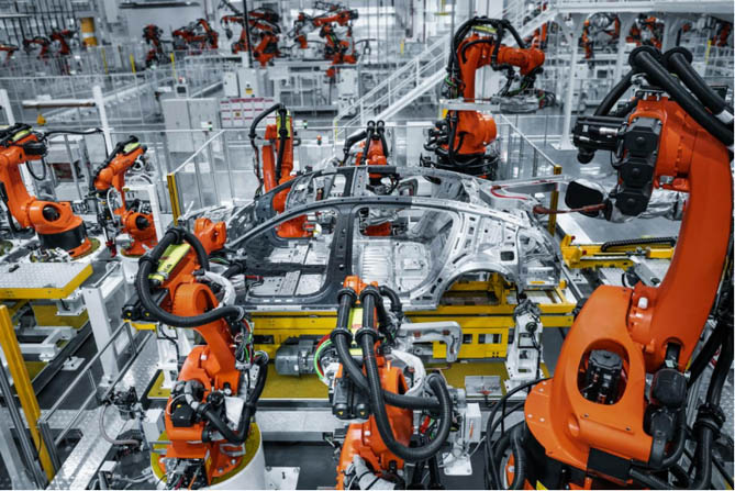 尊界超级工厂配备超过1800台智能机器人,实现冲焊涂总全面自动化与数字化,同时支持智能柔性定制能力,将尊界的极致工艺要求完美落地。