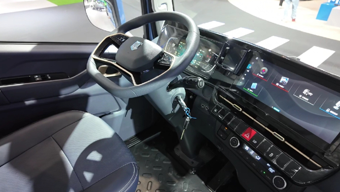 车身结构上,潍柴蓝擎 X7采用笼式框架设计,顶盖新增横梁强化承载能力,抗冲击性显著提升;超大风挡玻璃将地面盲区缩短10%,A柱障碍角缩小15%,视野更开阔,驾驶更安全。