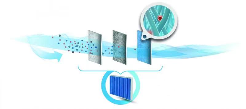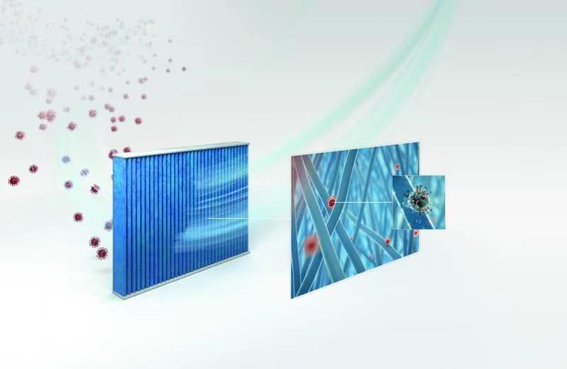 曼恩抗病毒高性能微粒过滤器可以显著降低车内病毒气溶胶的浓度,从而有效防止病毒的传播。该过滤器采用多层过滤结构,可以有效地过滤有害气体、无机颗粒、生物颗粒以及气溶胶,将其捕获并中和。前两层的过滤性能很高,可以显著降低气空气中气溶胶的浓度。而在第三层的生物功能层则几乎能完全过滤掉剩余的病毒。
