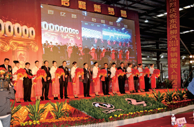 2010年,东风柳汽整体产销成功突破10万辆,销售收入顺利达到100亿,跻身柳州市“百亿俱乐部”会员,东风柳汽迎来了历史的高光时刻!对于柳汽人来说,10万辆和100亿销售额的突破有着里程碑式的意义。