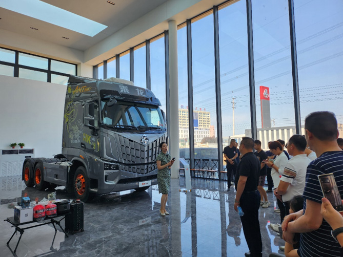 在邯郸伯昂客户体验中心,与会成员详细了解乘龙一体化业务。业务聚焦用户需求,提供从选车、金融、用车、管车、后市场等“一揽子解决方案”,加之贴心、安心、放心的售前售后服务,赋能用户价值,助力客户降本增效。