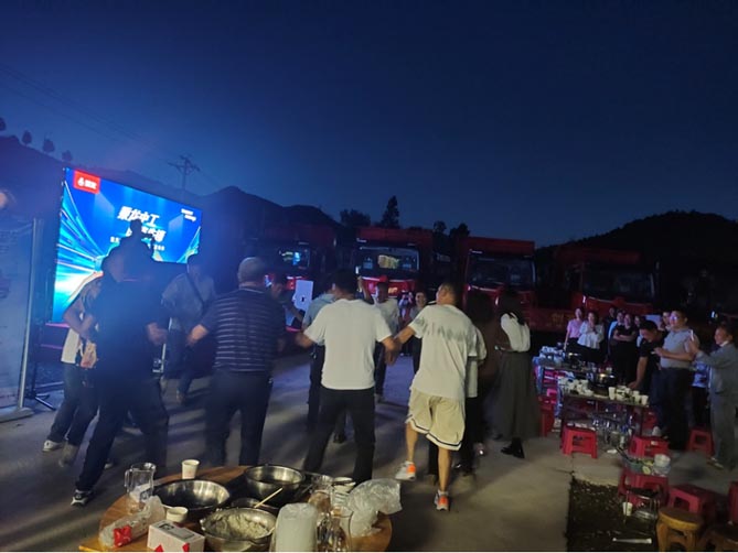 上市仪式结束后,“以车会友 共享乘龙”嘉年华随之开启。美味的火锅、啤酒,民族风情的舞蹈,更有多才多艺的卡友倾情献声,现场气氛一次次掀起高潮。众人齐声高呼“乘龙中工 创富先锋”,也见证了乘龙卡车与卡友的双向奔赴。