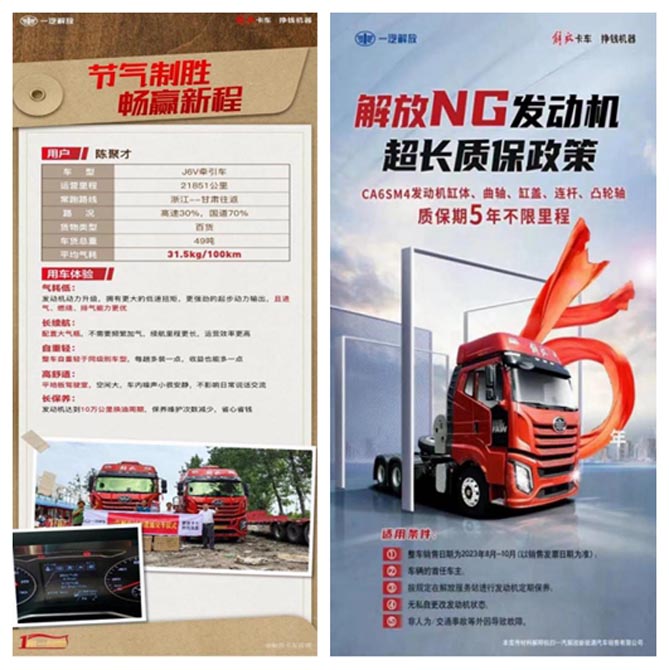 新品搭载了CA6SM4系列的530马力天然气发动机,最大扭矩可达2500N·m,起步动力输出更为强劲。此外,发动机10万公里长换油周期、火花塞20万公里长寿命、50万公里冷却液更换周期指标,此“三项”技术突破,使得该车成为全生命周期成本领先的国产重卡典范。一经上市,便以卓越性能和低气耗硬核实力赢得众多卡友的青睐,用户也纷纷通过晒气耗,证明这款精英重卡真正符合“解放卡车,挣钱机器”的美誉!不妨,让我们倾听他们的真实反馈。